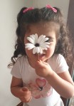 Afterwards the day went busy… I got the kids ready to go out, then my husband took my 2 oldest girls for a walk while I was getting ready myself and forgot about St. Therese. After a while my oldest came through the front door loudly and excited saying “look at this flower, mama!!”. I didn’t pay much attention thinking it was the flower she ALWAYS gets after her walks. After taking a glance of it, I frozed. I approached my daughter in shock and asked her to see it… and there it was, a beautiful white flower with a purple centre. PURPLE!. Being shocked is an understatement… I truly cried like a baby a minute after.